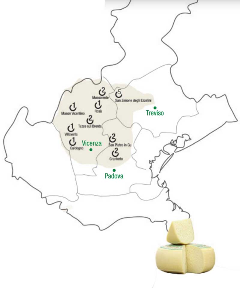 L'Asiago Fresco DOP si produce in una zona che va dai prati della pianura padana agli alpeggi dell'Altopiano di Asiago.